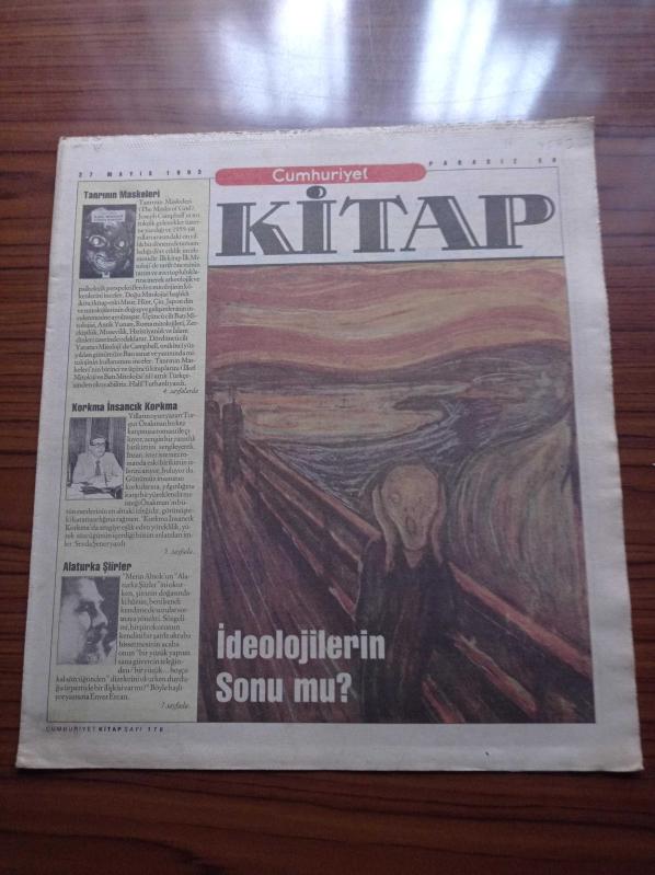 Cumhuriyet Kitap Gazetesi - 27 Mayıs 1993 - Cem Nobel Dizisi - Rıfat Ilgaz - Oktay Akbal Kırmızı Tenteli Tramvay - Cinema Paradiso - Sayı 170 - İdeolojilerin Sonu Mu - Ufuk Uras - Marksist Araştırma Ödülü -Tanrının Maskeleri - Korkma İnsancık Korkma - Turgut Özakman - Alaturka Şiirler - Metin Altınok adlı eser Türkçe dilindedir.