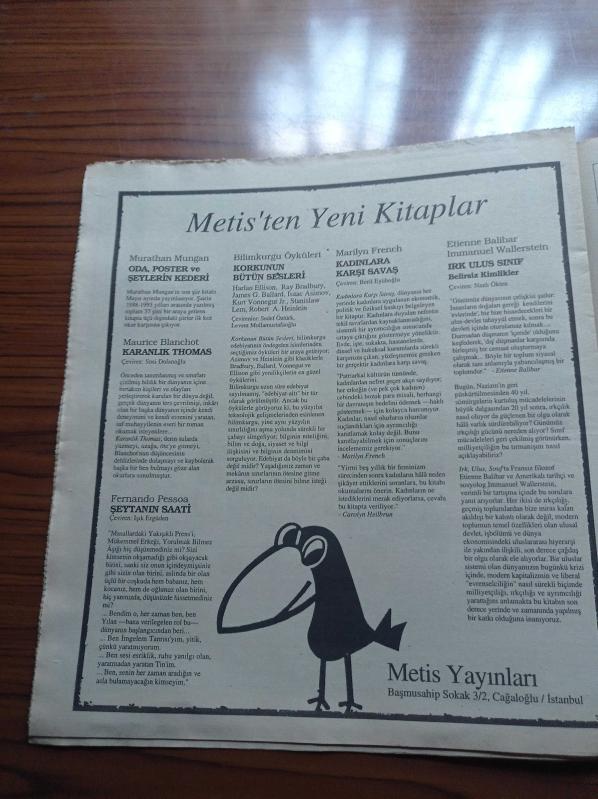 Cumhuriyet Kitap Gazetesi - 27 Mayıs 1993 - Cem Nobel Dizisi - Rıfat Ilgaz - Oktay Akbal Kırmızı Tenteli Tramvay - Cinema Paradiso - Sayı 170 - İdeolojilerin Sonu Mu - Ufuk Uras - Marksist Araştırma Ödülü -Tanrının Maskeleri - Korkma İnsancık Korkma - Turgut Özakman - Alaturka Şiirler - Metin Altınok adlı eser, Kitap > Süreli Yayınlar > Gazeteler kategorisinde İkinci El olarak satıştadır.
