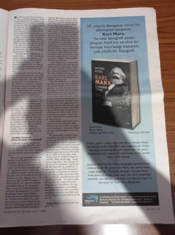 Cumhuriyet Kitap Gazetesi - 27 Mayıs 2010 - Sayı 1058 - İlhan Taşçı Cüppeli Adalet - Ahmet Oktay Emperyalizm Roman Ve Eleştiri - Aydın Şimşek Adalar Kitabı - Ali Teoman Cafe Esperanza - Murat Yalçın'dan Aşkımumya Ve İma Kılavuzu - Larry Gonick'ten Evrenin Çizgi Tarihi - Asmalımescit - Karl Marx - Uğur ve Nedim Şener'le İşte Hayatım'a Dair adlı eser Türkçe dilindedir.