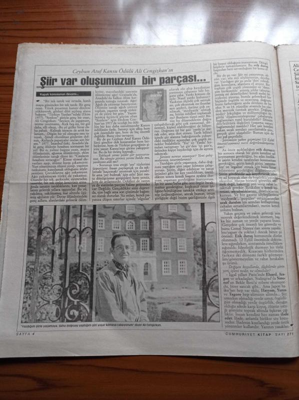 Cumhuriyet Kitap Gazetesi - 27 Nisan 1995 - Sayı 271 - Charles Taylor'dan Modernliğin Sıkıntıları Narkissos'un Büyüklüğü - Keloğlan Masallarına Çağdaş Yorum - Cevdet Kudret'in Oyun Yazarlığı - Ali Cengizkan Fotoğrafı - Ceyhun Atuf Kansu Şiir Ödülünü Alan Ali Cengizkan- Sistem Karşıtı Hareketler- Borges - Kum Kitabı - Hopkins-Şiir Var Oluşumuzun Bir Parçası - Attila İlhan - Cevdet Kudret adlı eser Türkçe dilindedir.