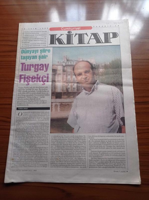 Cumhuriyet Kitap Gazetesi - 29 Ekim 1998 - Sayı 454 - Dünyayı Şiire Taşıyan Şair Turgay Fişekçi Fotoğrafı - Bir Rifat Ilgaz Güncesi -- Dip Sevgi'den Arı Bakış'a Derin Dalışlar - İnsanlığın Mahrem Tarihi - Hayatın Değeri- John Harris - Marx'ın Özgürlük Etiği adlı eser Türkçe dilindedir.