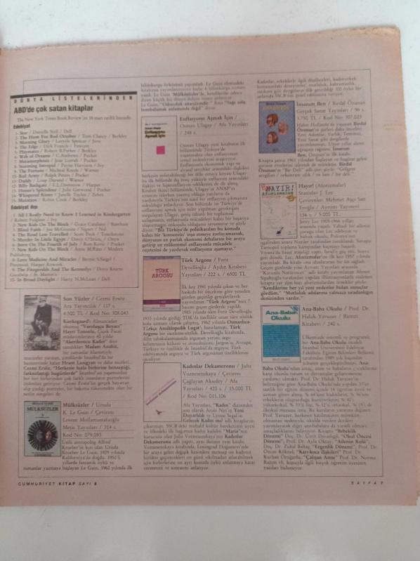 Cumhuriyet Kitap Gazetesi - 30 Mart 1990 - Sayı 8 - Raskolkinov- Sabahattin Ali- Çağdaş Bir Eğitim İçin - Yasak Aşk Kırık Hayat - Sarısabır Çiçekleri - Beyoğlu Pera İken - Anadoluda Amerika adlı eser Türkçe dilindedir.