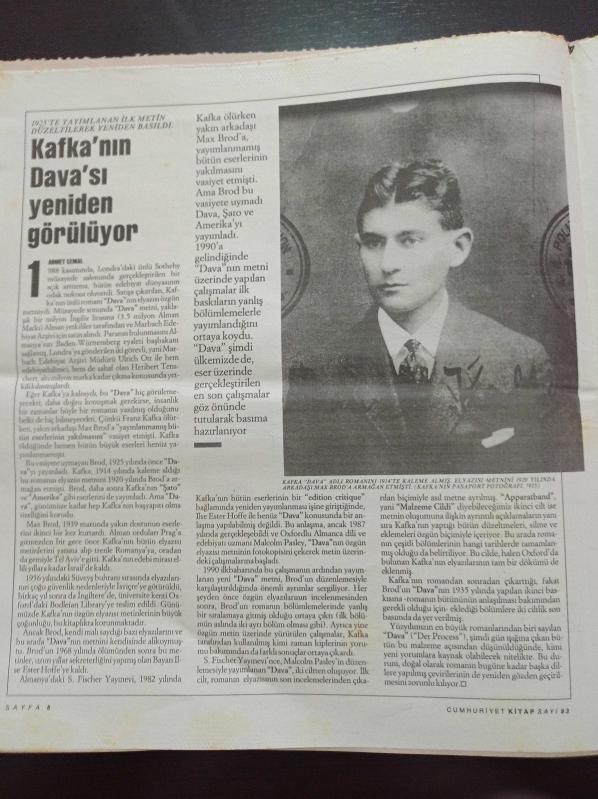 Cumhuriyet Kitap Gazetesi- 5 Aralık 1991- Sayı 93 - Kafka'nın Davası Yeniden Görülüyor - Dava'nın Elyazması - Red Kit Geliyor - Otoyol Tipi Hapishane - Ömer Laçiner - Kürt Sorununa Yeniden Bakış adlı eser Türkçe dilindedir.