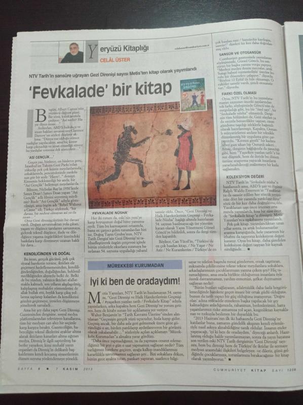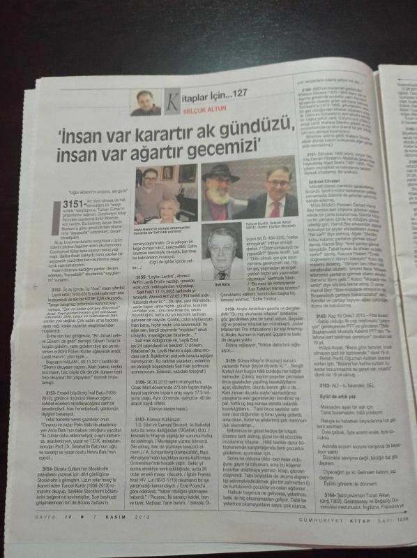 Cumhuriyet Kitap Gazetesi - 7 Kasım 2013 - Sayı 1238 - Ahmet Ümit Fotoğrafı - Beyoğlu'nun En Güzel Abisi - Albert Camus 100 Yaşında - Yalçın Tosun - Dokunma Dersleri - Suat Derviş - Fosforlu Cevriye - Ankara Mahpusu adlı eser Türkçe dilindedir.