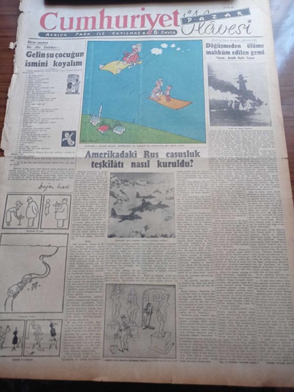 Cumhuriyet Pazar Gazetesi - 14 Aralık 1952 - Amerika'daki Rus Casusluk Teşkilatı Nasıl Kuruldu - Graf Von Spee Faciasının Yıldönümünde - Döğüşmeden Ölüme Mahkûm Edilen Gemi - Adnan Menderes - Her Şeyi Olan Kız Elizabeth Taylor - Dünya Edebiyatından Seçme Hikayeler Hayatın Ötesi - Haftanın Şakaları Hazret'in Emri Yazan Burhan Felek - En Güzel Gülen Artist Valery Hobson - Bizim Yıldızlar Hümaşah Hiçan - Vera Ellen Saf Kız Rolünde - Ingrid Bergman Mesud Değil Mi - Kadın Ev Moda - Basmalar Nasıl Yıkanmalıdır - Ankara Devlet Operası Yeni Bir Eser Hazırlıyor - Yeni Hidrojen Bombası Atom Bombasına Niçin Tercih Ediliyor - Kadın Katilleri 2 - Dünyanın En Güzel Dağını Claude Kogan İle Nicole Leininger İsimli İki Kadın Fethetti - Kanını Vererek Yaşayan Köpek adlı eser, Kitap > Süreli Yayınlar > Gazeteler > Türkiye > Genel > Günlük kategorisinde İkinci El olarak satıştadır.