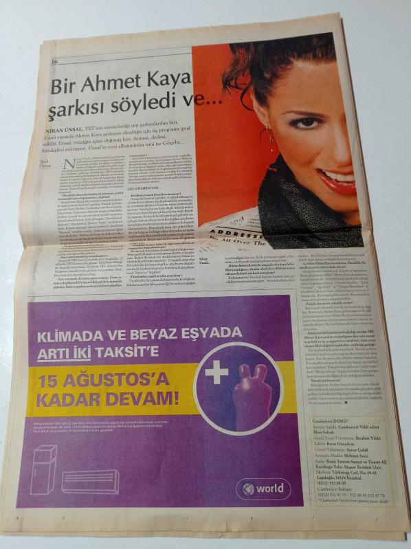 Sayfa Boyutu: 35*56cm Sayfa Sayısı: 10 Cumhuriyet Pazar Gazetesi Yıpranma, sararmalar, kupon kesiği ve yırtılmalar zamana bağlı olarak görülebilir