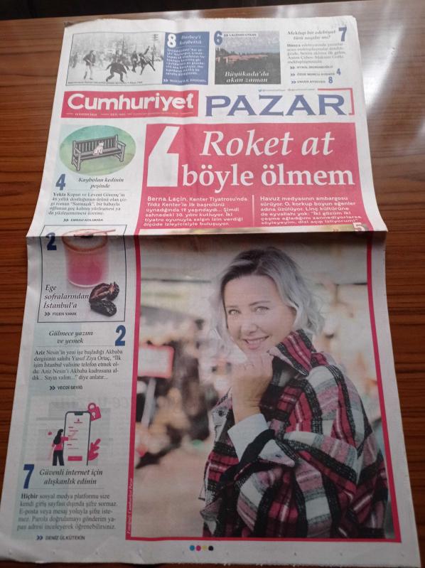 Cumhuriyet Pazar Gazetesi - 15 Kasım 2020 - Sayı 1601 - Berna Laçin - Roket At Böyle Ölmem - Çizgi Roman Sarmaşık - Yekta Kopan - Mektup Bir Edebiyat Türü Sayılır Mı - Büyükada'da Akan Zaman - 68 Olayları - Aziz Nesin - Diyojen Dergisi 150. Yılında - Blok Flütü Herkes Sevemez -- Enver Aysever-Fotoğrafik Tarihin Deviydi adlı eser Türkçe dilindedir.