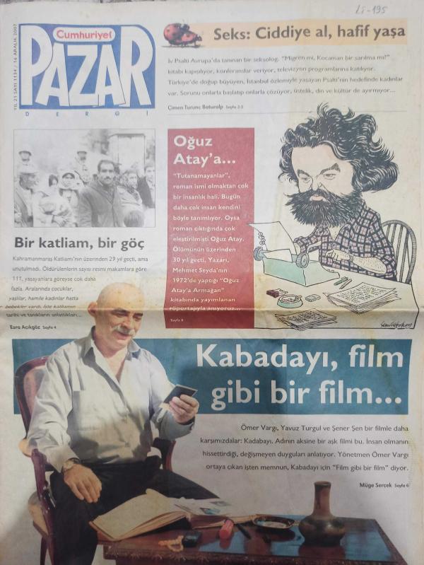 Cumhuriyet Pazar Gazetesi - 16 Aralık 2007 - Şener Şen - Çimen Turunç Baturalp - Deniz Ülkütekin - Esra Açıkgöz - Selçuk Erez - Müge Serçek - Oğuz Atay - Yıpranma, Sararma, Yırtılmalar Zamana Bağlı Olarak Görülebilir.