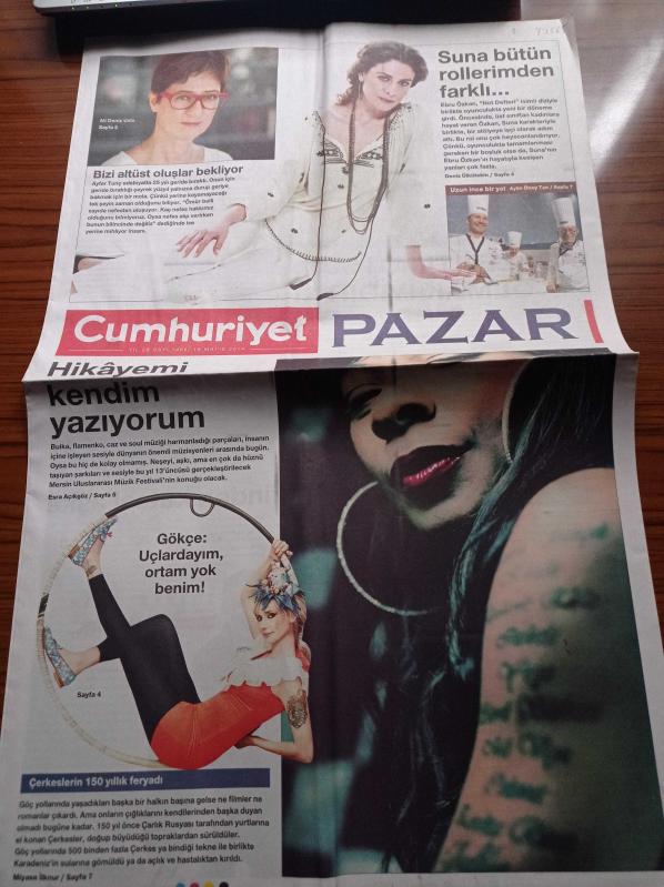 Cumhuriyet Pazar Gazetesi - 18 Mayıs 2014 - Sayı 1469 - Kadınların Estetik Duygusu Meme Okulu Açtırdı - Kutsiyet Kolektifinden Kutsal Aşka - Bezmi Alem Doktorları -Buika - Flamenko - Caz Ve Soul Müziği - Ebru Özkan Fotoğrafı - Çerkeslerin 150 Yıllık Feryadı adlı eser Türkçe dilindedir.