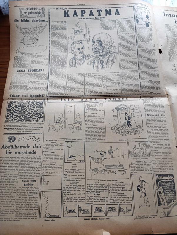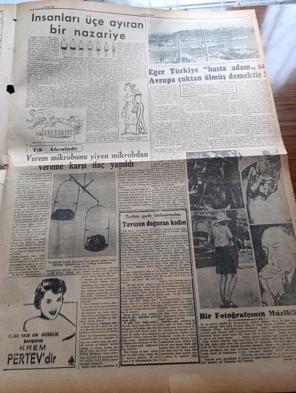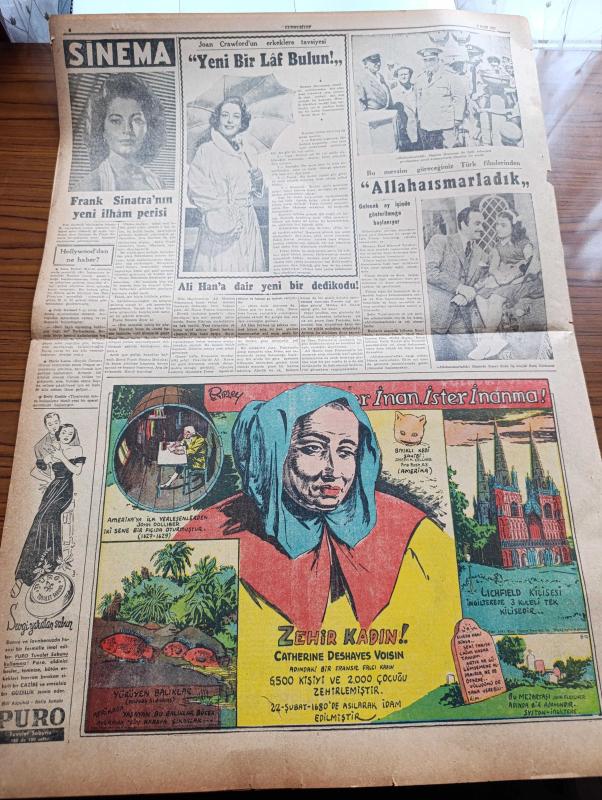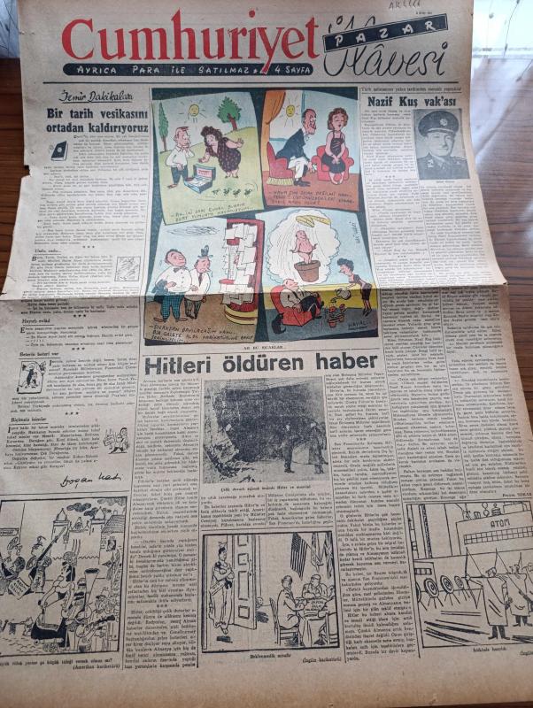Cumhuriyet Pazar Gazetesi - 2 Eylül 1951 - İzmir Dakikaları Yazan Doğan Nadi Köşe - Türk Zabıtasının Yakın Tarihinden Meraklı Yapraklar Nazif Kuş Vakası - Ah Bu Sıcaklar Karikatür - Adolf Hitler'i Öldüren Haber - Kapatma Yazan Ve Resimleyen Zahir Güvemli - Boş Vaktinizi Hoş Geçirmek İçin - Zeka Sporları - Çıkar Yol Hangisi Bulmaca - Abdülhamide Dair Bir Müşahede - Truman Yerine MacArthur - İnsanları Üçe Ayıran Bir Nazariye - Verem Mikrobunu Yiyen Mikroptan Vereme Karşı İlaç Yapıldı - Eğer Türkiye Hasta Adamsa Avrupa Çoktan Ölmüş Demektir - Tavşan Doğuran Kadın - Bir Fotoğrafçının Muziplikleri - Frank Sinatra'nın Yeni İlham Perisi - Ava Gardner İle Frank Sinatra Seviştiklerini Gizlemiyor - Joan Crawford'un Erkeklere Tavsiyesi Yeni Bir Laf Bulun - Rita Hayworth'un Ali Handan Boşanmaya Karar Verişi Üzerine Dedikodular - İster İnan İster İnanma - Zehir Kadın Catherine Deshayes Voisin - Bu Mevsim Göreceğimiz Türk Filmlerinden Allahaısmarladık - Suavi Tedü - Hadi Hün - Esen Görkmen adlı eser, Kitap > Süreli Yayınlar > Gazeteler > Türkiye > Genel > Günlük kategorisinde İkinci El olarak satıştadır.