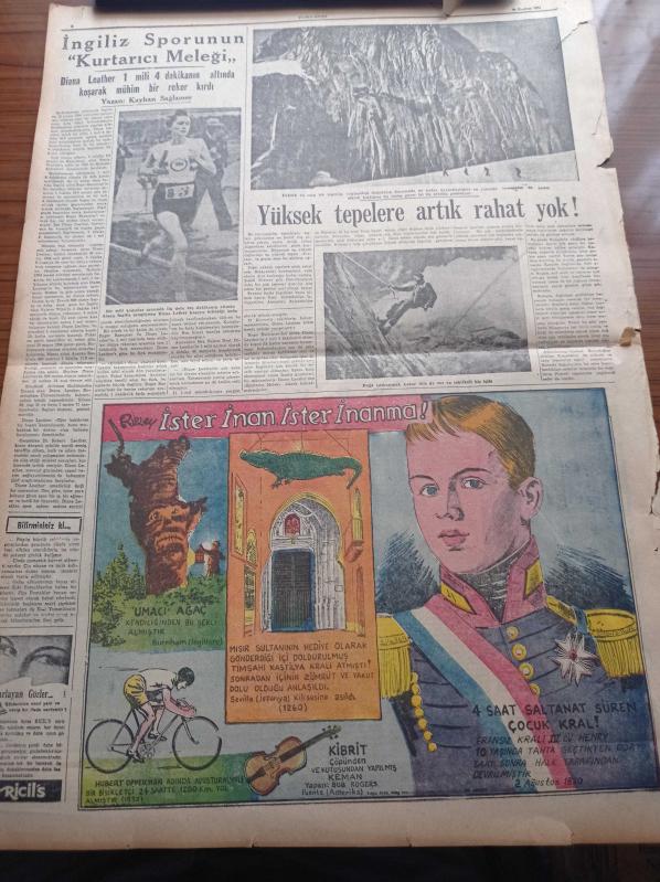 Cumhuriyet Pazar Gazetesi - 20 Haziran 1954 - Dünya Mizahından Seçme Hikayeler Altın Sesli Kız - Haftanın Ansiklopedisi Tepkililer - Küçük Kral Çizen O. Soglow - Fuad Duyar - Haftanın Şakaları Yazan Burhan Felek - Zihin Sporları - Eğlencelik - Leslie Caron'a Benziyor Ve O Değerli Bir Balerin Saruhan Şardağ - Zeki Müren Belgin Doruk'la Son Beste İsimli Bir Film Çeviriyor - Margaret Lockvood Türk Filmlerini Merak Ediyor - Ginger Rogers'le Kocasının Macerası - Ev Kadın Moda - Medeniyetin Diş Belası - İngiliz Sporunun Kurtarıcı Meleği Diana Leather - Yüksek Tepelere Artık Rahat Yok - 4 Saat Süren Çocuk Kral Fransız Kralı 4. Henry adlı eser, Kitap > Süreli Yayınlar > Gazeteler > Türkiye > Genel > Günlük kategorisinde İkinci El olarak satıştadır.