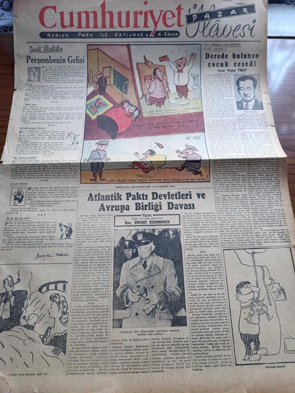 Cumhuriyet Pazar Gazetesi - 23 Eylül 1951 - Yedi Dakika Yazan Doğan Nadi - Hırsızlara Kalpazanlara Ve Polislere Dair Karikatür - Atlantik Paktı Devletleri Ve Avrupa Birliği Davası Yazan General Dwight Eisenhower - Türk Zabıtasının Yakın Tarihinden Meraklı Yapraklar 3 Derede Bulunan Çocuk Cesedi Yazan Feyyaz Tokay - Sherlock Holmes'in Meselelerinden 717 Muamması - Anadolu Efsaneleri Ana Alihe Kibele Yazan Halikarnas Balıkçısı - Fen Aleminde Atom Kuvvetiyle İşleyecek İlk Bombardıman Tayyaresi - Puro Tuvalet Sabunu - İngiliz Hayatından Sahneler - Herkes Biraz Ruh Hastasıdır - Moda Muhasebesinin Yeni Zaferleri - Gozüpek Bir Artist Gregory Peck - Lana Turner - Venedik Festivali Ve Gene Tierney - Hollywood'dan Ne Haber - İster İnan İster İnanma Köşesi - Hind Mihraceleri sen 2. Hari Hara adlı eser, Kitap > Süreli Yayınlar > Gazeteler > Türkiye > Genel > Günlük kategorisinde İkinci El olarak satıştadır.