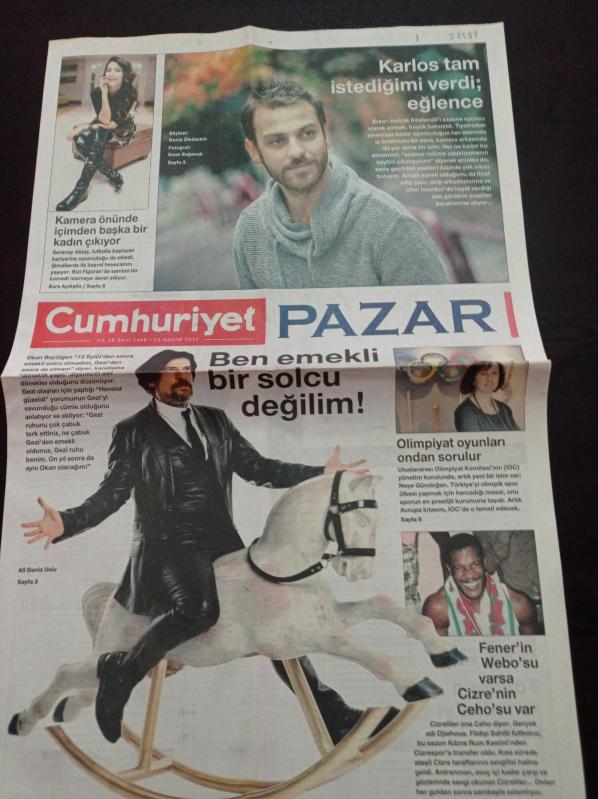 Cumhuriyet Pazar Gazetesi - 23 Kasım 2014 - Sayı 1496 - Uluslararası Olimpiyat Komitesi -Okan Bayülgen ve Erkan Koçak Köstendil Fotoğrafı - Abim Deniz Gezmiş - Ben Emekli Bir Solcu Değilim - Serenay Aktaş adlı eser Türkçe dilindedir.