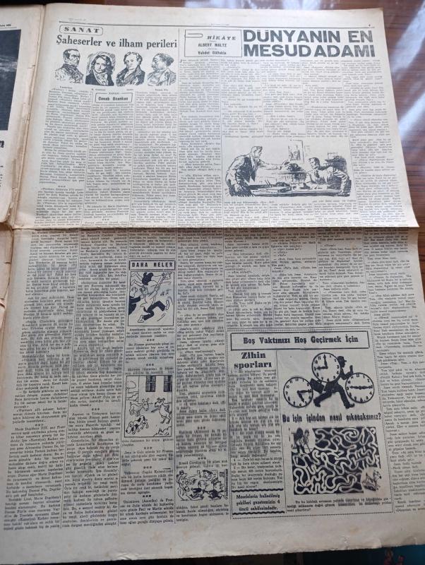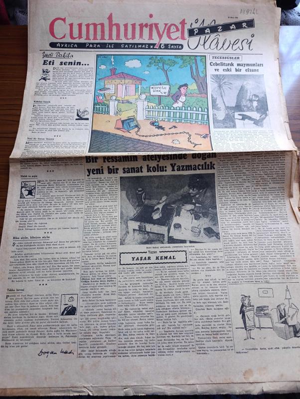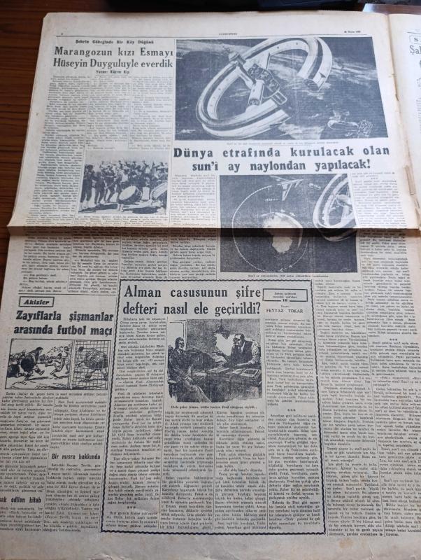 Cumhuriyet Pazar Gazetesi - 25 Mayıs 1952 - Yedi Dakika Yazan Doğan Nadi - Renkli Karikatür - Bir Ressamın Atelyesinde Doğan Yeni Bir Sanat Kolu Yazmacılık Yazan Yaşar Kemal - Cebelitarık Maymunları ve Eski Bir Efsane - Haftanın Şakaları Yazan Burhan Felek - Fethin 500. Yıldönümünde İstanbul'da Çiçek Bayramı Çizimi - Sanatlarını Analarına Havalarına Borçlu Olan Meşhur Artistler - Cumhuriyet Hollywood'da Yazan Haluk Durukal - Joan Crawfordla Kulüpte Bir Gece Fotoğraf - Yeni İngiliz Artistlerinden Joan Collins 18 Yaşına Bastı Fotoğrafı - Terence Morgan Ve Dört Güzel Kız Fotoğrafı - Şehrin Göbeğinde Bir Köy Düğünü Yazan Kazım Kip - Dünya Etrafında Kurulacak Olan Suni Ay Naylondan Yapılacak - Alman Casusunun Şifre Defteri Nasıl Ele Geçirildi Yazan Feyyaz Tokar - Sanat Şaheserler Ve İlhan Perileri Yazan Cenap Ozankan - Hikaye Dünyanın En Mesut Adamı Yazan Albert Maltz - Zihin Sporları - Ev Kadın Moda Köşesi - Londra New York Ve Paris Yaz Modelleri - İster İnan İster İnanma Çizen Ripley adlı eser, Kitap > Süreli Yayınlar > Gazeteler > Türkiye > Genel > Günlük kategorisinde İkinci El olarak satıştadır.