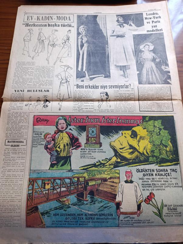 Cumhuriyet Pazar Gazetesi - 25 Mayıs 1952 - Yedi Dakika Yazan Doğan Nadi - Renkli Karikatür - Bir Ressamın Atelyesinde Doğan Yeni Bir Sanat Kolu Yazmacılık Yazan Yaşar Kemal - Cebelitarık Maymunları ve Eski Bir Efsane - Haftanın Şakaları Yazan Burhan Felek - Fethin 500. Yıldönümünde İstanbul'da Çiçek Bayramı Çizimi - Sanatlarını Analarına Havalarına Borçlu Olan Meşhur Artistler - Cumhuriyet Hollywood'da Yazan Haluk Durukal - Joan Crawfordla Kulüpte Bir Gece Fotoğraf - Yeni İngiliz Artistlerinden Joan Collins 18 Yaşına Bastı Fotoğrafı - Terence Morgan Ve Dört Güzel Kız Fotoğrafı - Şehrin Göbeğinde Bir Köy Düğünü Yazan Kazım Kip - Dünya Etrafında Kurulacak Olan Suni Ay Naylondan Yapılacak - Alman Casusunun Şifre Defteri Nasıl Ele Geçirildi Yazan Feyyaz Tokar - Sanat Şaheserler Ve İlhan Perileri Yazan Cenap Ozankan - Hikaye Dünyanın En Mesut Adamı Yazan Albert Maltz - Zihin Sporları - Ev Kadın Moda Köşesi - Londra New York Ve Paris Yaz Modelleri - İster İnan İster İnanma Çizen Ripley, Yunus Nadi tarafından kaleme alınmıştır. Cumhuriyet Pazar Gazetesi - 25 Mayıs 1952 - Yedi Dakika Yazan Doğan Nadi - Renkli Karikatür - Bir Ressamın Atelyesinde Doğan Yeni Bir Sanat Kolu Yazmacılık Yazan Yaşar Kemal - Cebelitarık Maymunları ve Eski Bir Efsane - Haftanın Şakaları Yazan Burhan Felek - Fethin 500. Yıldönümünde İstanbul'da Çiçek Bayramı Çizimi - Sanatlarını Analarına Havalarına Borçlu Olan Meşhur Artistler - Cumhuriyet Hollywood'da Yazan Haluk Durukal - Joan Crawfordla Kulüpte Bir Gece Fotoğraf - Yeni İngiliz Artistlerinden Joan Collins 18 Yaşına Bastı Fotoğrafı - Terence Morgan Ve Dört Güzel Kız Fotoğrafı - Şehrin Göbeğinde Bir Köy Düğünü Yazan Kazım Kip - Dünya Etrafında Kurulacak Olan Suni Ay Naylondan Yapılacak - Alman Casusunun Şifre Defteri Nasıl Ele Geçirildi Yazan Feyyaz Tokar - Sanat Şaheserler Ve İlhan Perileri Yazan Cenap Ozankan - Hikaye Dünyanın En Mesut Adamı Yazan Albert Maltz - Zihin Sporları - Ev Kadın Moda Köşesi - Londra New York Ve Paris Yaz Modelleri - İster İnan İster İnanma Çizen Ripley adlı eser Türkçe dilindedir.