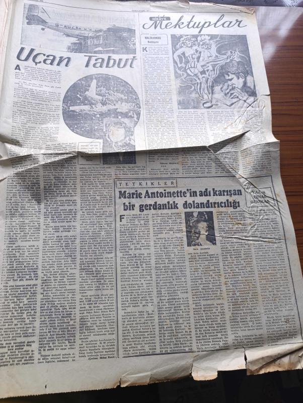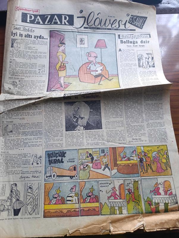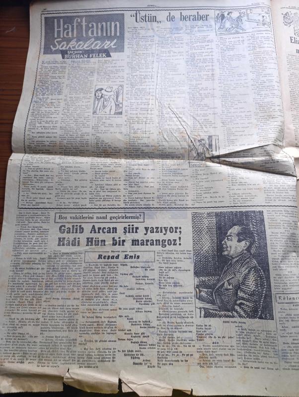 Cumhuriyet Pazar Gazetesi - 26 Aralık 1954 - Yedi Dakika Köşesi Yazan Doğan Nadi - Karikatür - Sanat Haftası - Şarlo Ve Limelight - Gelişigüzel Bolluğa Dair Yazan Hamdi Varoğlu - Küçük Kral Karikatür - Galip Arcan Şiir Yazıyor Hadi Hün Bir Marangoz Röportajı Yapan Reşad Enis - Haftanın Şakaları Yazan Burhan Felek - Elizabeth Taylor'un Kocası Niçin Mesud Olduklarını Anlatıyor Fotoğraf - Yeni Türk Filmleri - Milletlerarası Festivallere Girmek Düşüncesiyle Hazırlanan Film Kaçak'ın Senaryosunu Haldun Taner Yazdı - Marilyn Monroe İle Gina Lollobrigida'nın Benzerleri Var - Sinema Tekniğinde Yeni Bir İcad - Ev Kadın Moda - Londra Modasından Seçme Modeller - Uçan Tabut - Hikaye Mektuplar Yazan Halikarnas Balıkçısı - Marie Antoinette'in Adı Karışan Bir Gerdanlık Dolandırıcılığı Yazan Cenap Ozankan - Meşhurların Büyük Aşkları Yazan Feyyaz Tokar - Edwina Wilhelmina Ve Kocası Lord Harewood Fotoğraf- İster İnan İster İnanma Yazan Ripley - Tarihin En Cömert Bahşişi adlı eser, Kitap > Süreli Yayınlar > Gazeteler > Türkiye > Genel > Günlük kategorisinde İkinci El olarak satıştadır.