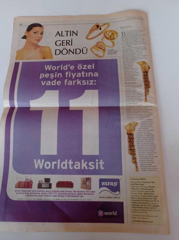 Sayfa Boyutu: 35*56cm Sayfa Sayısı: 16 Cumhuriyet Pazar Gazetesi Yıpranma, sararmalar, kupon kesiği ve yırtılmalar zamana bağlı olarak görülebilir