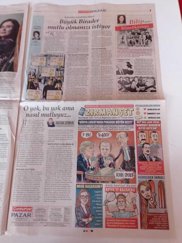 Sayfa Boyutu: 35*56cm Sayfa Sayısı:8 Cumhuriyet Pazar Gazetesi Yıpranma, sararmalar, kupon kesiği ve yırtılmalar zamana bağlı olarak görülebilir