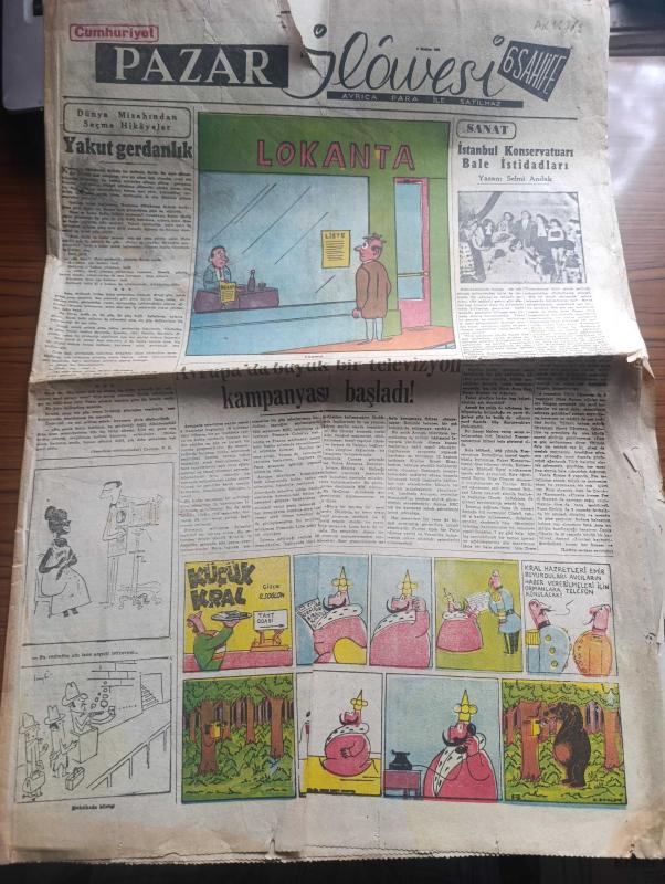 Sayfa Boyutu : 42*58 cm Sayfa Sayısı: 6 Cumhuriyet Pazar Gazetesi Yıpranma, sararmalar, kupon kesiği ve yırtılmalar zamana bağlı olarak görülebilir Bilgilendirme : Tam takım gazetedir