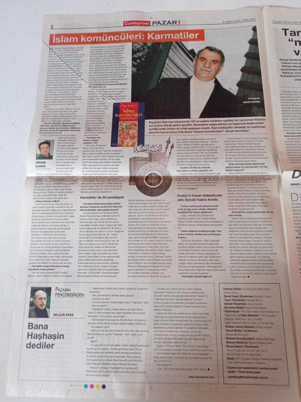 Cumhuriyet Pazar Gazetesi - 9 Şubat 2014 - Sayı 1455 - Faik Bulut - İslam'ın Asi Çocukları - Şeyh Bedrettin - Karmatiler - Hasan Sabbah - İstanbul'da Bir Hobbit - Elijah Wood - Mitolojiden Dijital Dünyaya Hikayecilik adlı eser Türkçe dilindedir.