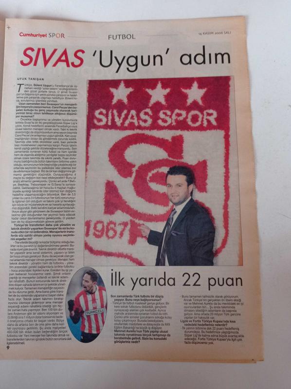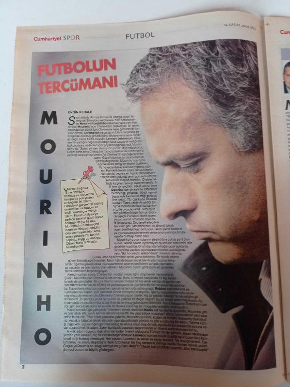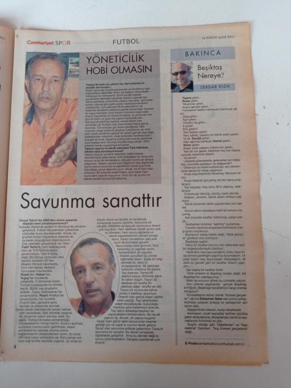 Cumhuriyet Spor Gazetesi - 14 Kasım 2006 - Futbolun Şiiri Fena Halde Yaşam- Gençliğim Eyvah - Rasim Kara Beşiktaş Nereye - Unutulan Efsane Veli Balli- Futbolun Tercümanı Mourinho - Nuri Şahin adlı eser Türkçe dilindedir.