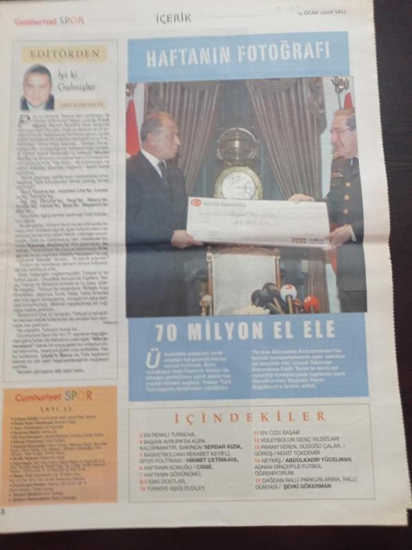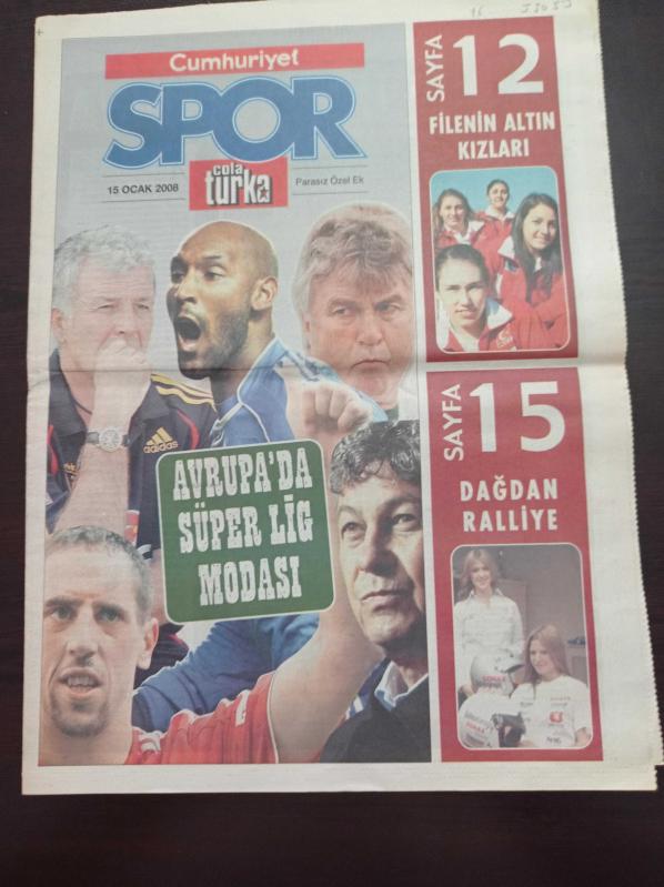Cumhuriyet Spor Gazetesi - 15 Ocak 2008 - Türkiye Aşığı Dudley-Frank Ribery - Nicolas Anelka - Eric Gerets - Mircea Lucescu - Filenin Altın Kızları - Dağdan Ralliye - Fatih Terim - Yaşar Büyükanıt adlı eser Türkçe dilindedir.