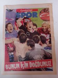 Sayfa Boyutu: 28*38cm Sayfa Sayısı:16 Cumhuriyet Spor Gazetesi Yıpranma, sararmalar, kupon kesiği ve yırtılmalar zamana bağlı olarak görülebilir