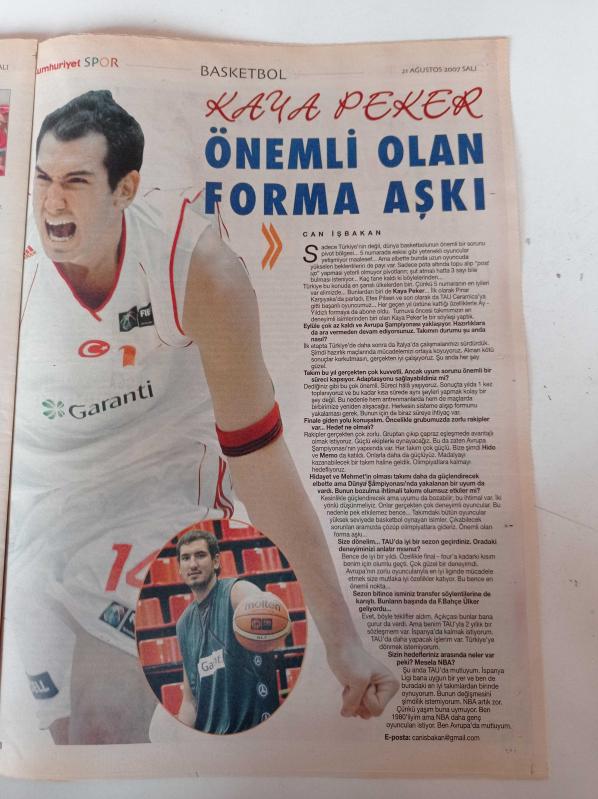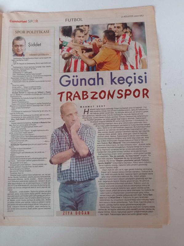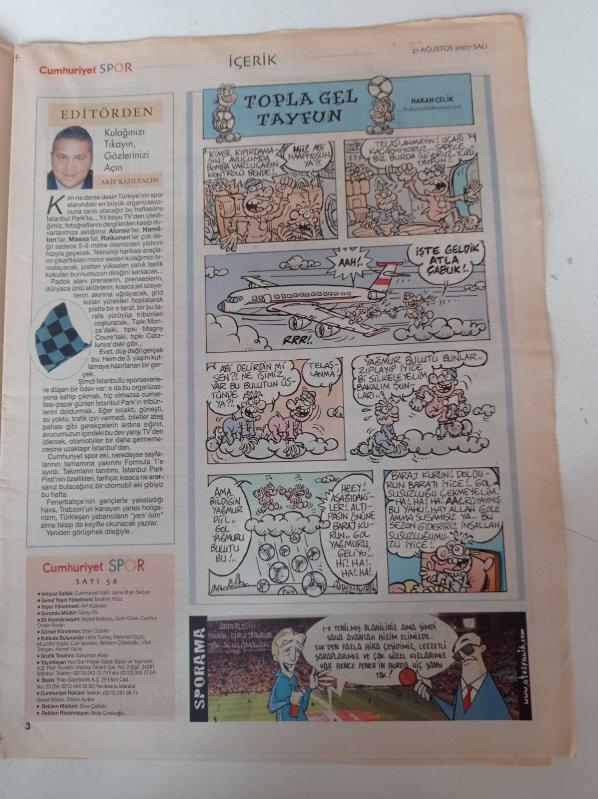 Cumhuriyet Spor Gazetesi - 21 Ağustos 2007 - Kaya Peker Önemli Olan Forma Aşkı - Bizim Parkta Dev Kapışma - Günah Keçisi Trabzonspor - Golü Koklayan Adam Semih Şentürk - Atıcının Dostu Sponsor adlı eser Türkçe dilindedir.