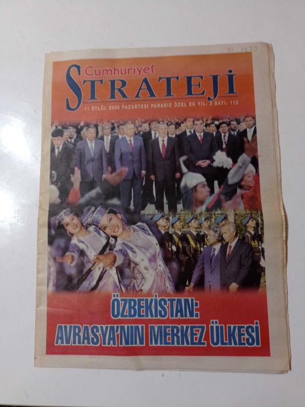 Cumhuriyet Strateji Gazetesi - 11 Eylül 2006 - Sayı 115 - Özbekistan Avrasya'nın Merkez Ülkesi - Dördüncü Nesil Savaş Tartışması - Çin'de Hızlı Büyüme Sorunları - Ortadoğu'da İlk Raund Sona Erdi - Türkiye'de Sınırsız Toprak Satışı - İsrail'in Ana Planı Boşa Çıktı adlı eser Türkçe dilindedir.