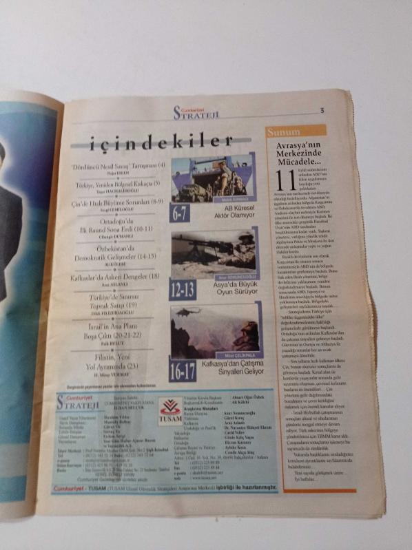 Sayfa Boyutu: 28*38cm Sayfa Sayısı:24 Cumhuriyet Strateji Gazetesi Yıpranma, sararmalar, kupon kesiği ve yırtılmalar zamana bağlı olarak görülebilir