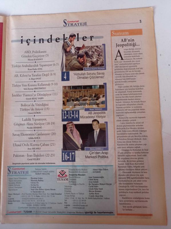 Cumhuriyet Strateji Gazetesi-18 Eylül 2006 - Sayı 116 - Tony Blair Angela Merkel ve Jacques Chirac Fotoğrafı - AB Jeopolitik Mücadeleyi Yitiriyor - Hizbullah Sorunu Savaş Olmadan Çözülemez - Çin'den Arap Merkezli Politikası - Laiklik Yıpranıyor - Ulusal Ordu Kurma Çabası adlı eser Türkçe dilindedir.