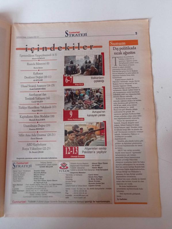 Cumhuriyet Strateji Gazetesi-25 Ağustos 2008 - Sayı 217 - Afganistan Savaşı Pakistan'a Sıçradı - Karzai Pakistan'ı Suçluyor - Hindistan Afganistan'ı Destekliyor adlı eser Türkçe dilindedir.