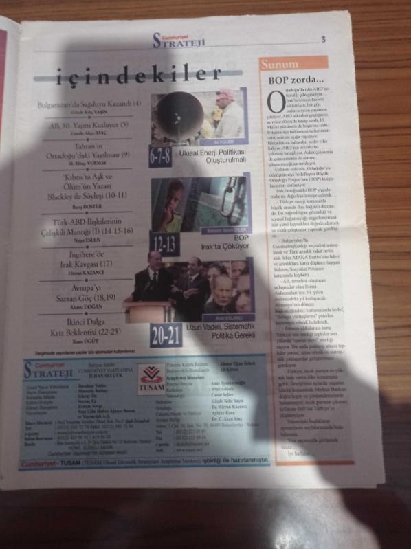 Sayfa Boyutu: 28*38cm Sayfa Sayısı: 24 Cumhuriyet Strateji Gazetesi Yıpranma, sararmalar, kupon kesiği ve yırtılmalar zamana bağlı olarak görülebilir
