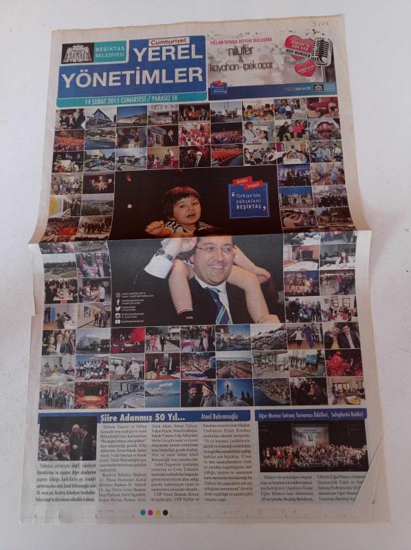 Cumhuriyet Yerel Yönetimler Gazetesi - 14 Şubat 2015 - Beşiktaş Belediyesi- Beşiktaş Belediye Başkanı Murat Haznedar- Şiire Adanmış 50 Yıl Ataol Behramoğlu-- Uğur Mumcu Santranç Turnuvası Ödülleri Sahibini Buldu - Dev Konser- Kayahan - Nilüfer adlı eser Türkçe dilindedir.