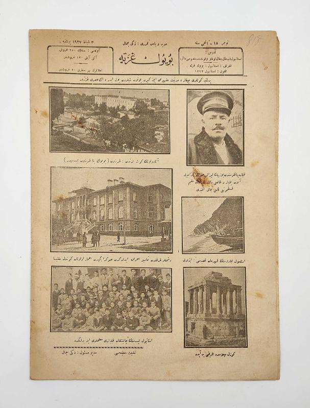 [Cumhuriyet dönemi Osmanlıca Gazete] Büyük Gazete, 3 Şubat 1927. No: 15 "Yurdunun karalarına, semâlarına hâkim olan Türk'ün yakında denizlerine de hakim olacaktır." manşetiyle Türk donanması görselli. Baş muharrir: Zeki Cemâl adlı eser, Kitap > Osmanlıca Nadir Kitaplar > Süreli Yayınlar kategorisinde İkinci El olarak satıştadır.