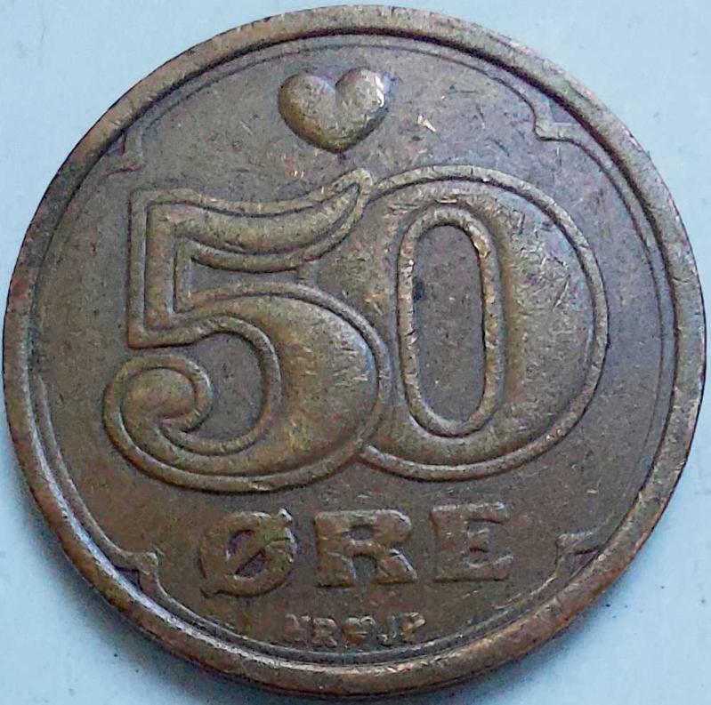 DANİMARKA 50 Öre, Kraliçe Margrethe II 1989 Bronz ÇÇT FOTOĞRAFTAKİ PARA YOLLANACAKTIR. 4