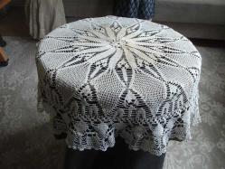 DANTEL - FİSKOS MASASI ÖRTÜSÜ - ÇAPI 92 CM - LEKELİ