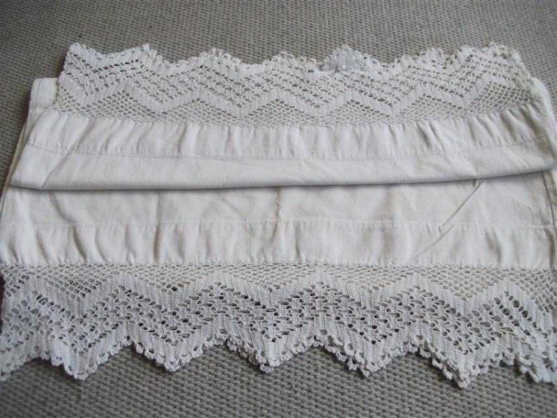 DANTELLİ İŞLEMELİ - ÇİFT KİŞİLİK YASTIK başlıklı antika/koleksiyon objesi Türkiye menşe’lidir. 1950-1999 arası dönemine aittir.