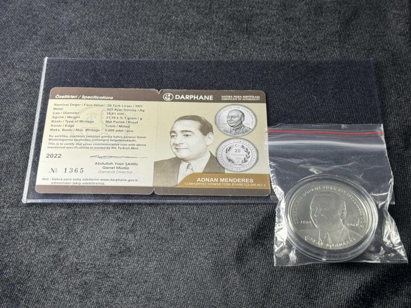 DARPHANE Adnan Menderes - Cumhuriyet Dönemi Türk Siyasetçileri No:2 Gümüş Hatıra Para Çil, bir ay önce satışa sunulmuştur.