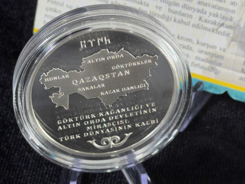 Darphane Kazakistan Bağımsızlığının 30. Yılı Gümüş Hatıra Sikke | Çil – Kapsül İçinde – Sertifikalı Kazakistan Cumhuriyeti’nin bağımsızlığının 30. yılı anısına hazırlanan bu özel gümüş hatıra sikke, Türk dünyasının ortak tarihini, kültürel köklerini ve modern devlet anlayışını bir araya getiren anlamlı bir koleksiyon eseridir. Hem tarihsel hem de sembolik değeriyle, uluslararası temalı gümüş sikkeler arasında dikkat çeken bir konuma sahiptir. Sikkenin ön yüzünde, Kazakistan haritası merkezde konumlandırılmış; harita üzerinde Hunlar, Göktürkler, Saka (İskitler), Altın Orda ve Kazak Hanlığı gibi Türk tarihinin önemli siyasi oluşumlarına atıfta bulunan ifadeler yer almaktadır. Bu tasarım, Kazakistan’ın yalnızca modern bir devlet değil, aynı zamanda Türk tarihinin kadim mirasçılarından biri olduğunu güçlü biçimde vurgular. Alt bölümde yer alan ifade, Türk dünyası ile kurulan tarihsel bağa sembolik bir derinlik kazandırır. Arka yüzde ise Kazakistan’ın 30 yıllık bağımsızlık sürecini simgeleyen modern kompozisyon öne çıkmaktadır. Bağımsızlık vurgusu, devlet sembolleri ve çağdaş grafik unsurlarla birlikte dengeli bir biçimde sunulmuştur. Mat–parlak yüzey geçişleri, proof baskı tekniğinin sağladığı estetik kaliteyi açıkça ortaya koymaktadır. 925 ayar gümüşten üretilmiş olan sikke, 38,61 mm çapı ve tırtıllı kenar yapısı ile klasik koleksiyon standartlarını taşımaktadır. Proof (mat–parlak) baskı tekniği sayesinde yüzey detayları net, yazı ve semboller ise yüksek kontrastla algılanmaktadır. Ürün, orijinal kapsülü içerisinde, çil kondisyonda ve sertifikasıyla birlikte muhafaza edilmektedir. Sertifikada belirtilen nominal ağırlık 31,10 gram ±%1 olup, gümüş koleksiyon sikkelerinde üretim ve ölçüm süreçlerine bağlı olarak oluşabilen küçük tolerans farkları doğal ve olağan kabul edilmektedir. Türk dünyası teması, Kazakistan’ın bağımsızlık yıldönümü vurgusu ve yüksek darphane işçiliği; bu sikkeyi yalnızca bir koleksiyon objesi değil, aynı zamanda tarihsel ve kültürel bir sembol hâline getirmektedir. Teknik Özellikler: • Metal: 925 Ayar Gümüş • Ağırlık: 31,10 g ±%1 • Çap: 38,61 mm • Kenar: Tırtıllı • Baskı Türü: Proof (Mat–Parlak) • Nominal Değer: 30 Türk Lirası • Kondisyon: Çil • Muhafaza: Orijinal kapsül ve sertifika • Basım Yılı: 2021 Türk tarihinin sürekliliğini ve Kazakistan’ın modern devlet kimliğini aynı kompozisyonda buluşturan bu özel gümüş sikke; Türk dünyası, bağımsızlık temalı koleksiyonlar ve uluslararası tarih serileri için güçlü, anlamlı ve prestijli bir tercihtir.