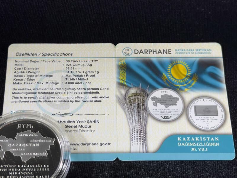 DARPHANE Kazakistan Bağımsızlığının 30. Yılı Gümüş Hatıra Sikke | Çil – Kapsül İçinde – Sertifikalı başlıklı ürün, Efemera, Müzik, Sinema > Nümismatik, Para, Madalya > Hatıra Paraları > Hatıra Parası kategorisi altında Yeni olarak satılmaktadır.