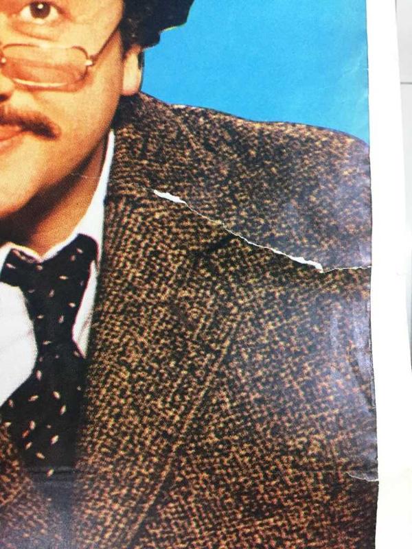Sattığımız afiş / posterler dönemine ait orijinal ürünlerdir. Fotoğraflarda kondisyonları görebilirsiniz., Kondisyonlar temiz durumdadır. Aksi bir durum olduğunda ilave fotoğraf ve bilgi yer alacaktır. Kondisyon: İkinci fotoğrafta görüldüğü gibi sağ köşede şeffaf bantla arkadan onarılmış 6-7 cm yırtılma vardır.