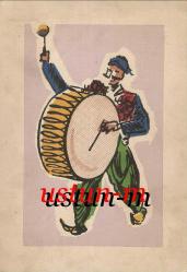 ** DAVUL ÇALAN ADAM TEMALI ESKİ DEVİR REKLAM KARTI ** 20.5 x 14,5 cm.ebadında,elle yapılmış, arka yüzünde "eski devirlerde reklam" baskı yazısı olan, davul çalan adam konulu çok temiz karttır...