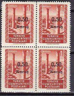 DBL.063 1952 0,50 KURUŞ SÜRŞARJLI POSTA PULU 4'LÜ MNH, bir ay önce satışa sunulmuştur.