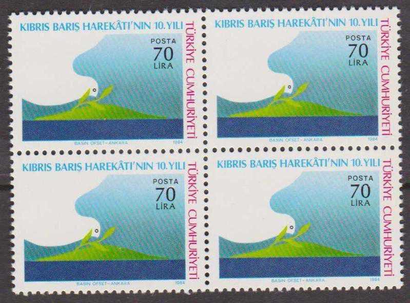 DBL.527 1984 KIBRIS BARIŞ HAREKATI'NIN 10.YILI 4'LÜ MNH, 3 yıl önce satışa sunulmuştur.