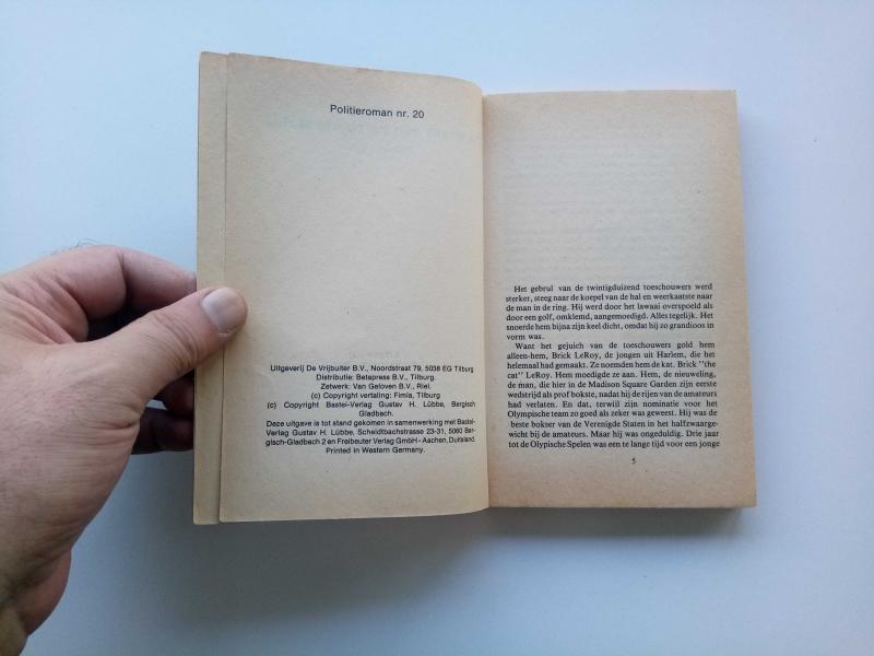 is een FBI-agent, die zijn leven op het spel zet bij zijn strijd tegen de misdaad. Door moed en irastberadenheid wist hij zich een vaste plaats te yeroveren in de harten van miljoenen lezers fin rpeer dan 50 landen. De vvraak van de zwarte maffia Hij was de rijkste man van Harlem: Concho Moran. En zeker ook de gemeenste. Zijn knokploegen beheersten de straten, de winkelsy de bars. En als iemand het aandurfde te zeggen, dat die gangsters maar eens uit Harlem moesten verdvvij-nen, stuurde Moran een killer op hem af. Totdat de jonge topsporter Brick LeRoy de chef van de Zvvarte Maffia uitdaagde. Dat gaf de inwoners van Harlem nieuwe moed. Want Brick was hun idool, hun voorbeeld. Hem volgden ze juichend. Zelfs tot voor het bolwerk van Moran. Ook Phil en ik mochten die waaghals wel. Toen we hem vonden, was de Zvvarte Maffia van Moran ermee bezig, hem definitief kapot te maken - uit vvraak...