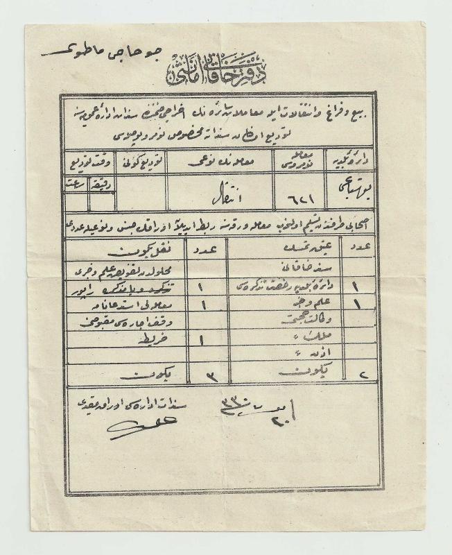 #1212404000692 Efemera, Müzik, Sinema Belge ve Evraklar Osmanlıca Belgeler