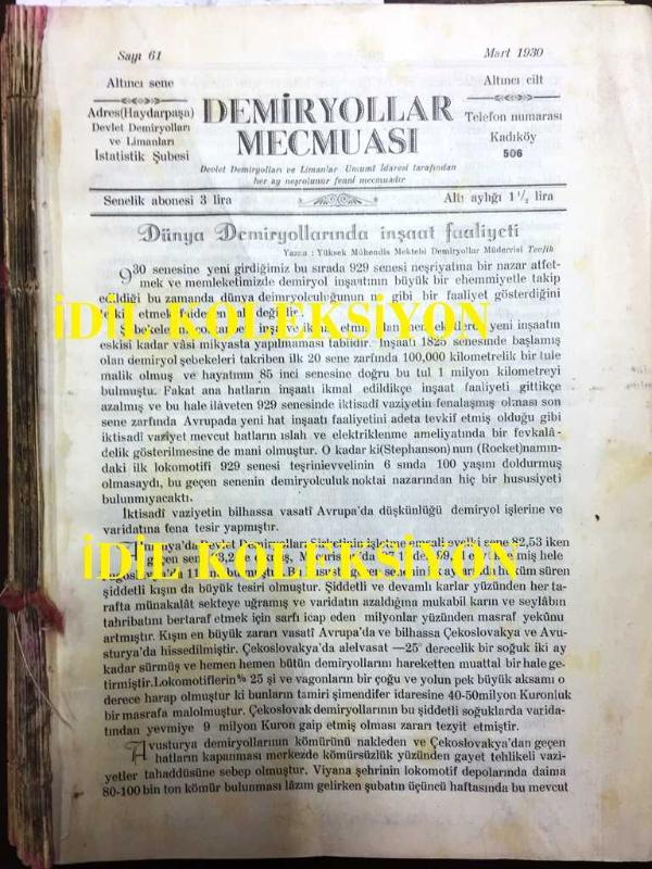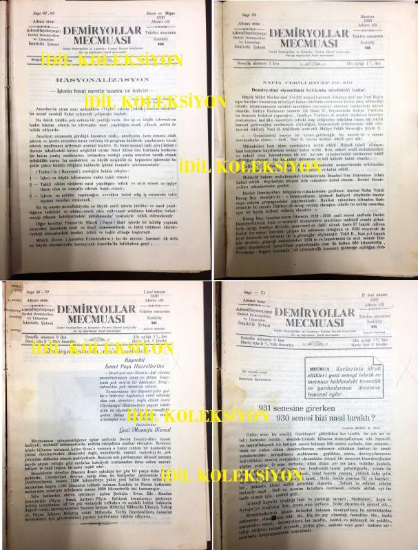 DEMİRYOLLARI MECMUASI - 7 SAYI BİR ARADA AYNI CİLTTE - 1930 - 1931 YILLARI ARASI - SAYI 61 - SAYI 62 ve 63 - SAYI 64 - SAYI 65 - SAYI 66 ve 70 ARASI TÜM SAYILAR - SAYI 71 - TOPLAM 592 SAYFA - SİVAS ŞARKIŞLA İSTASYONUNUN AÇILIŞI VE FOTOĞRAFLARI - SAMSUN SAHİL - DEMİRYOLLARI - MAKİNİST ÖMER EFENDİ - KERİM YÜMNÜ BEY -DEMİRYOLLARI MÜHENDİSİ FUAT B. - MAHMUT SADIK - VAHDEDDİN BEY - MÜHENDİS ABDULLAH BEY - SURİYE ve LÜBNAN DEMİRYOLLARI - NEMLİZADE GALİP BEY - SABIK NAFIA VEKİLİ RECEP BEY EFENDİ - UMUMİ MÜDÜR HAŞİM BEY EFENDİ - UMUMİ MÜDÜR MUAVİNİ RIFAT BEY EFENDİ - İNŞAAT UMUM REİSİ İZZET BEY EFENDİ - İŞLETME UMUM REİSİ VASFİ BEY EFENDİ - UMUMİ MÜFETTİŞ NURİ BEY EFENDİ - SAMSUN İŞLETME MÜFETTİŞİ HÜSEYİN YAKUP BEY - KONYA İŞLETME MÜFETTİŞİ CEMAL HİDAYET BEY - HAYDARPAŞA - KAYSERİ / ANKARA - SİVAS - LAHİK NAFİA VEKİLİ ZEKAİ BEY EFENDİ - ŞEYHÜLMUHARRİN MAHMUT SADIK BEY - NAFİ VEKİLİ HİLMİ BEYEFENDİ adlı eser Türkçe dilindedir.
