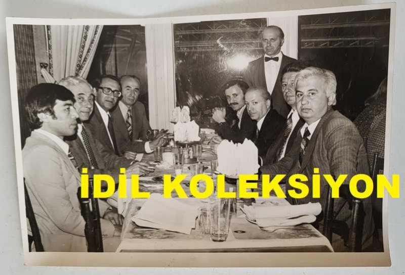 DEMOKRATİK PARTİ ESKİ GENEL BAŞKANI AHMET FERRUH BOZBEYLİ'NİN ORİJİNAL AJANS-BASIN FOTOĞRAFI - 18 x 12 EBADINDA - FERRUH BOZBEYLİ, MİLLETVEKİLİ ADAYLARINA VERDİĞİ AKŞAM YEMEĞİNDE ÖMÜR RESTAURANT'TA TOPLUCA HATIRA POZU VERİRKEN ÇEKİLMİŞ BİR KARE, 10 MAYIS 1977, 2 saat önce satışa sunulmuştur.