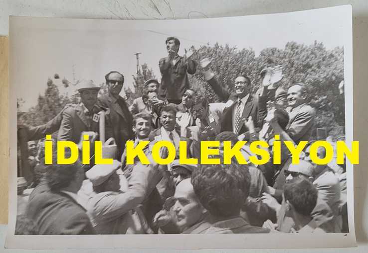 DEMOKRATİK PARTİ ESKİ GENEL BAŞKANI AHMET FERRUH BOZBEYLİ'NİN ORİJİNAL AJANS-BASIN FOTOĞRAFI - 18 x 12 EBADINDA - FERRUH BOZBEYLİ, YURT GEZİSİNDEKİ DURAKLARINDAN BİRİ OLAN KONYA'DA KENDİSİNİ TRAKTÖRLERLE KARŞILAYAN TOPLULUĞU SELAMLARKEN ÇEKİLMİŞ BİR KARE, TEMMUZ 1973, 2 saat önce satışa sunulmuştur.